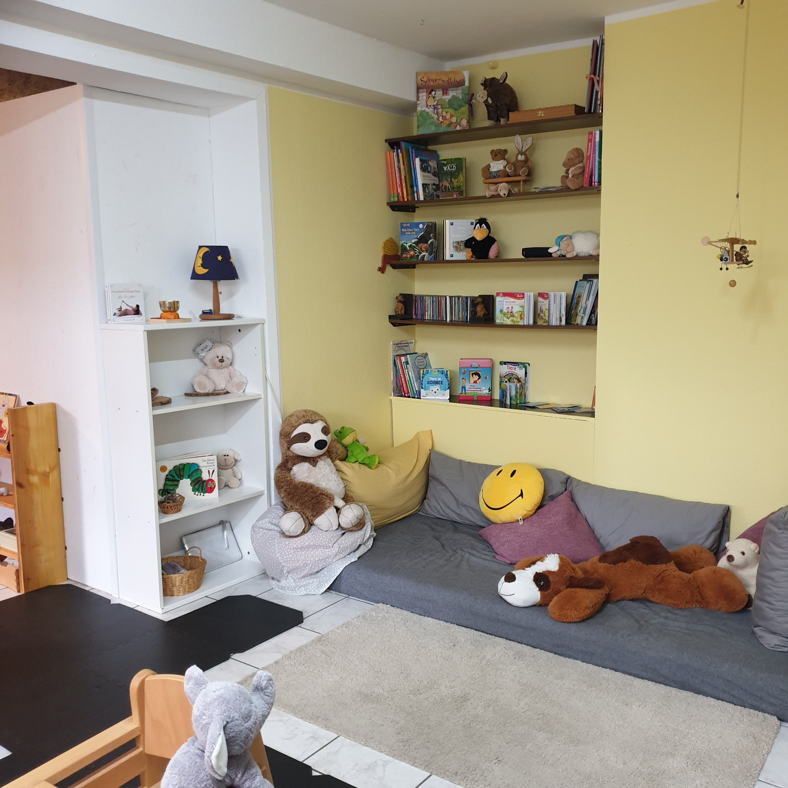 In den Räumen gibt es verschiedene Bereiche zum Basteln, Spielen und Bewegen – manche Bereiche werden auch für verschiedene Anlässe umgeräumt.