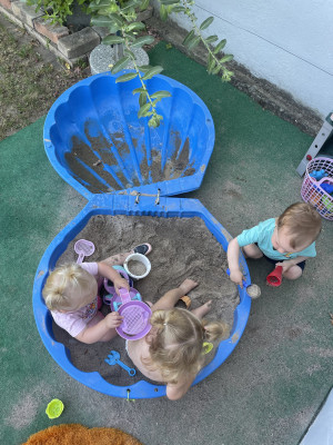 Im Außenbereich befindet sich ein schöner großer Garten, wo die Kinder die Natur mit allen Sinnen erleben dürfen!