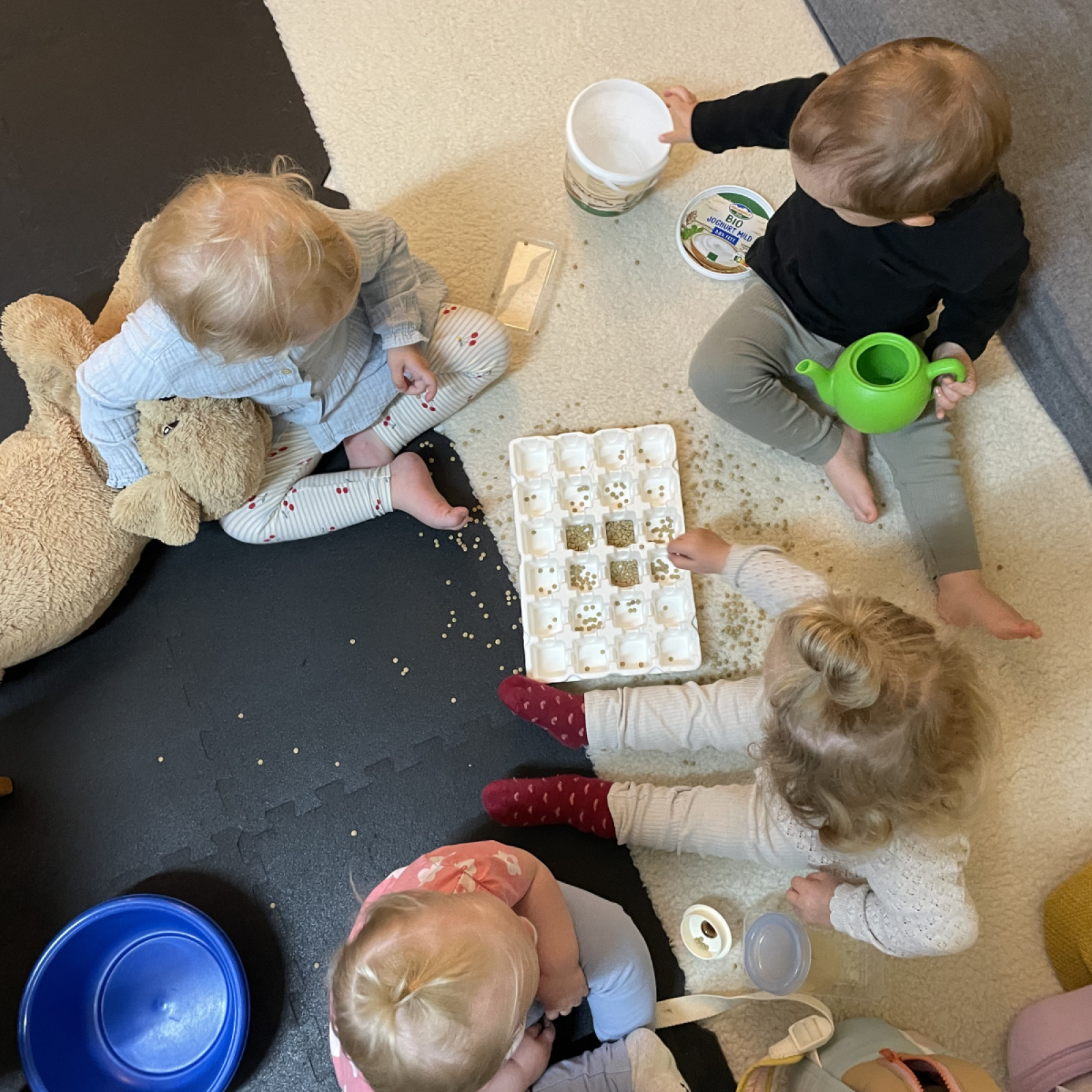 Die soziale Kompetenz der Kinder wird durch unsere Gruppe mit unterschiedlichen Altersstufen trainiert. Die Kinder lernen Rücksicht auf die Wünsche anderer Kinder zu nehmen und erproben spielend mit den eigenen Gefühlen und den Gefühlen anderer umzugehen. Die kleine Gruppe bietet einen schützenden Rahmen, in dem sich das Kind individuell entwickeln kann. Hier lernen die Kinder auch erste Freundschaften zu schließen, sie lernen sich durchzusetzen, aber auch tolerant auf die Wünsche anderer Kinder zu reagieren. Es entsteht ein soziales Gefüge, in dem die Kinder Halt finden und intensive Beziehungen kennenlernen.